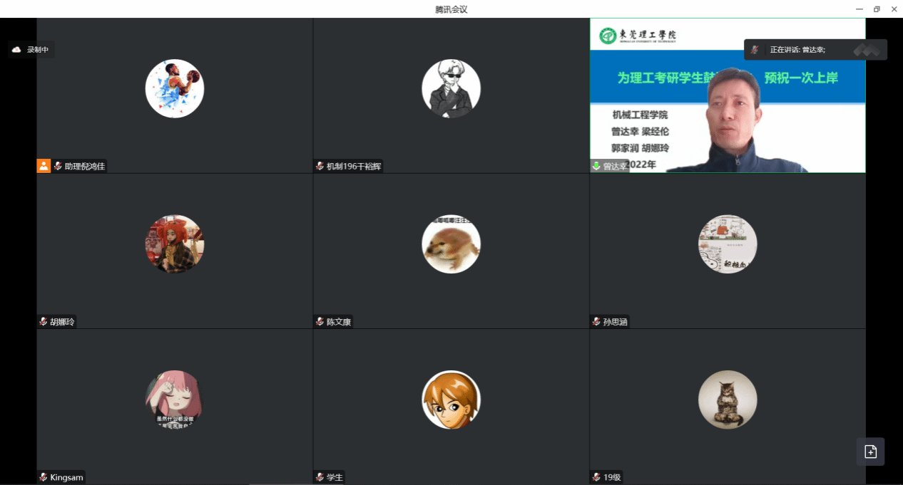 2022年12月18日下午,太阳成集团tyc9728召开考研动员大会。太阳成集团tyc9728副经理曾达幸、专任教师梁经伦博士、辅导员胡娜玲、郭家润老师、19级考研员工等参加会议。会议通过线上方式开展。