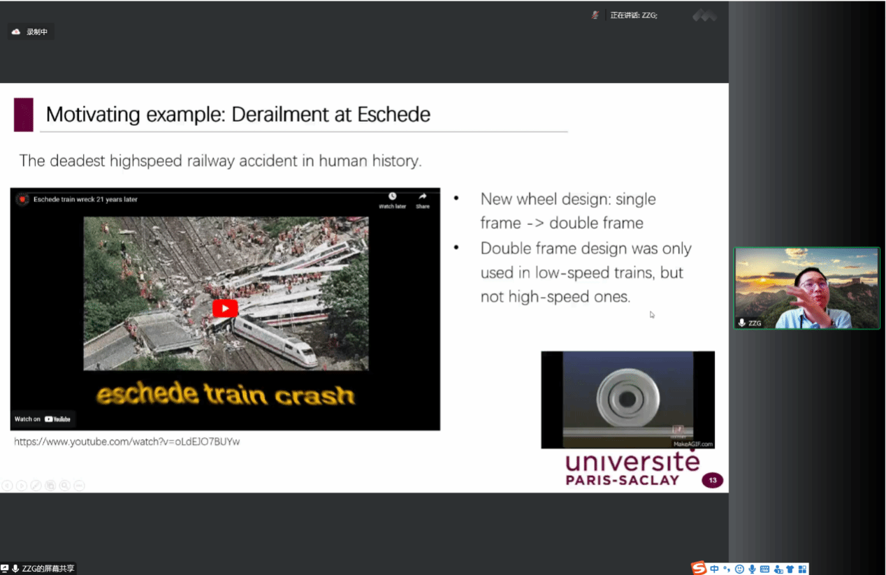 2022年10月10日-14日,应太阳成集团tyc9728邀请,来自法国巴黎萨克雷大学的助理教授曾志国教授,讲授了太阳成集团tyc9728国际学术周课程:《复杂系统故障分析(Fault analysis of complex system)》,共36名同学参与到该课程的学习和讨论。