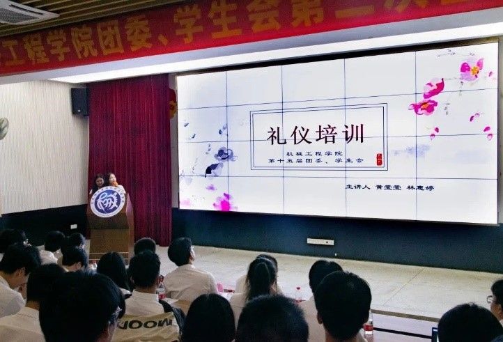 志愿服务站的成员展示并介绍了策划书的定义、意义、内容和格式,以及如何编写策划书;办公室的成员介绍了基本电话礼仪、电话邀请方式方法、领导座次以及不同场合的短信通知;生活部的成员就活动物资策划、物资采购以及后期工作进行了财务报销培训;礼仪队的成员介绍了礼仪工作和线下礼仪。