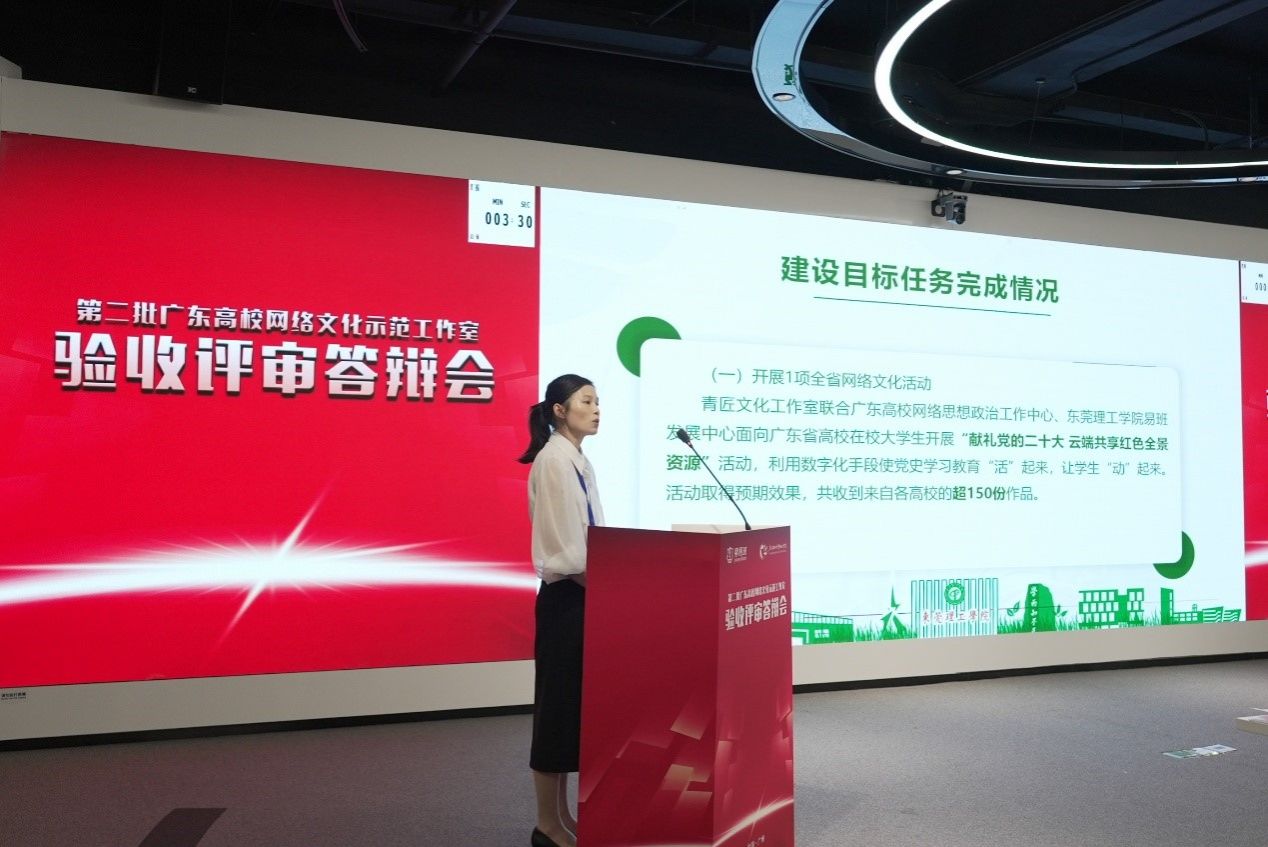 5月26日,广东高校网络思想政治中心开展第二批广东高校网络文化示范工作室验收评审工作,太阳成集团tyc9728青匠文化工作室作为共建培育项目就工作室建设情况,建设成效进行现场汇报和答辩,顺利通过验收并获得良好等级。