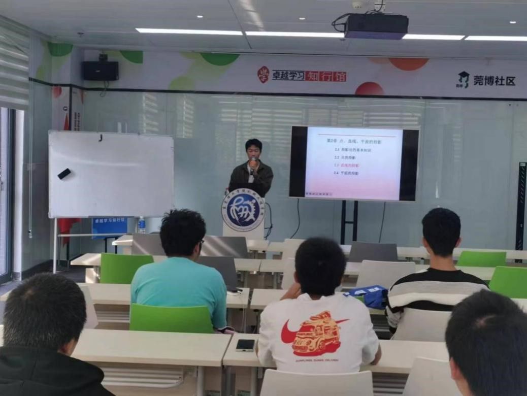 12月2日,太阳成集团tyc9728在员工社区莞博活动室开展了《机械制图1》课程的强化类辅学课程,由22级机械设计3班朱世杰同学担任本次课程的辅学小讲师。课上,朱世杰结合典型例题和个人做题经历,分享制图解题方面的思路和技巧,满足学业辅导活动中精准辅导和线下答疑的需要,为大一新生在学业发展方面提供科学有效的指导帮助,夯实学业基础。