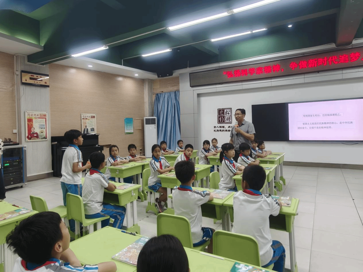 在交流分享环节,现场气氛热烈,同学们踊跃发言,大胆猜想当年科学家研制“两弹一星”时面临的困难,并分享自己了解的科学家事迹。其中提到了邓稼先为科研隐姓埋名28年,于敏带领团队实现氢弹技术的中国突破,杨维廉成功设计“嫦娥”奔月轨道等故事,这些师生互动交流进一步加深了同学们对航天科学家奉献精神的理解。