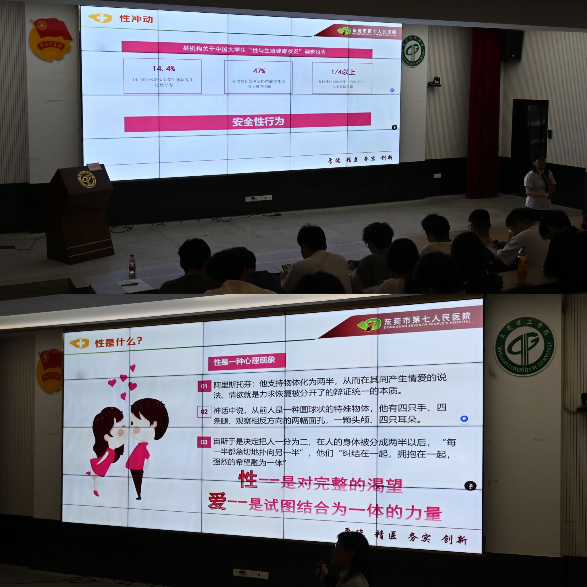 讲座中,吴靖华医生围绕活动主题,从多个维度展开讲解。她详细讲述了男生和女生青春期身体上的变化,让同学们对自身的生理发展有了更清晰的认识。接着,话题延伸到恋爱领域,深入分析了性心理的发展过程,并为同学们精准解读了 "性" 的内涵。为了让同学们更直观地了解现状,吴医生展示了中国老员工 "性与生殖健康状况" 调查报告,用数据说话,呼吁同学们重视安全性行为,爱护自己的身体,做一个有责任、有担当的人。