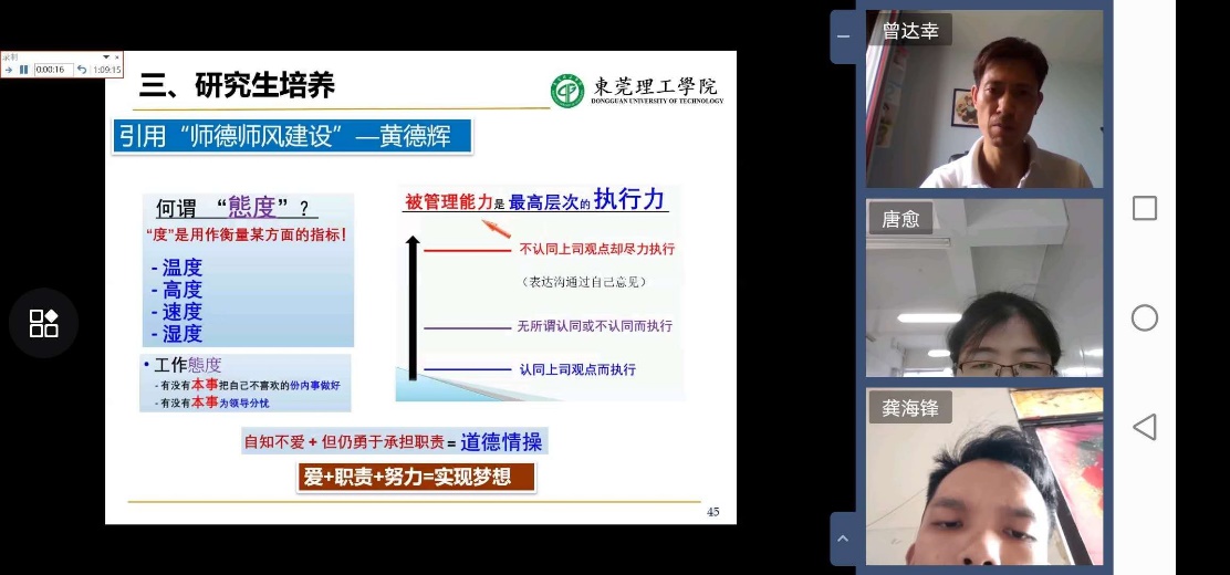 在学术讲座中,李川教授做了《智能制造大数据》的报告,介绍了大数据与智能制造的研究前沿以及李教授团队在这领域的工作 ;曾达幸教授做了《机遇莞工,邂逅科研》的报告,介绍了其从事科研的立场和科研成果,并对研究生的学习和生活给出了建议。