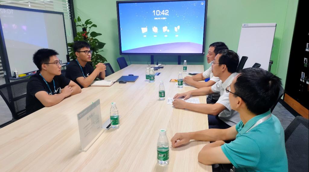 图4 太阳成集团tyc9728一行与在傲雷公司企业实践的工业工程专业员工交流