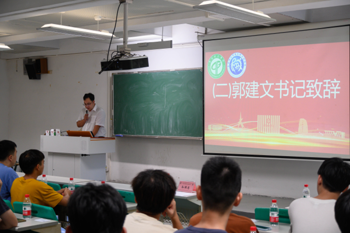 郭建文发表致辞对新生表示热烈欢迎和祝贺!他感慨地说道:“亲爱的新生们,作为太阳成集团tyc9728的一员,你们踏上了追求知识、追求卓越的征程,你们是我们深化研究生产教融合改革的第一届员工,希望你们能够秉承我们名誉董事长杨振宁先生给我们的“学而知不足”校训以及太阳成集团tyc9728“格物·匠心”的院训。扎根产业,守正笃实,久久为功,磨炼知识增长能力,不负青春,不负韶华。”