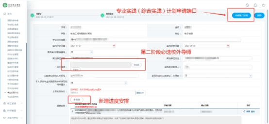 (2)研究生专业实践(综合实践)计划提交:培养管理-专业实践计划-申请第二阶段-提交;
