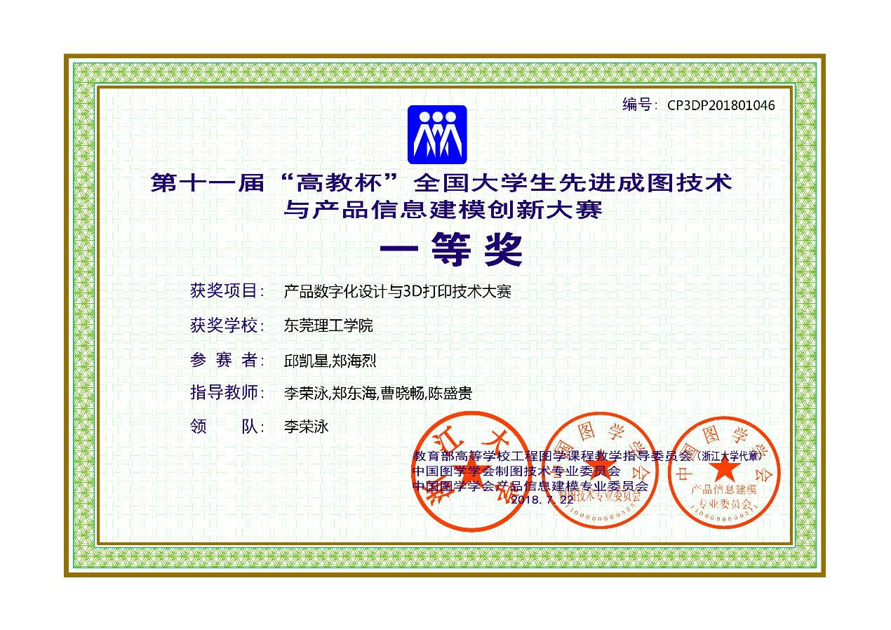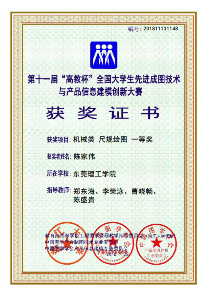 另外一个比赛,第十一届高教杯全国老员工先进成图技术与产品信息建模创新大赛于2018年7月20日至22日在江苏省南京市南京工业大学举行。该比赛吸引了北京理工大学、哈尔滨工业大学、华南理工大学等331所院校,共541个团队的3587名员工选手参赛,机械类竞赛项目包括尺规绘制零件图、三维建模及3D打印。公司太阳成集团tyc9728的9位同学组成1 个团队参加了本次比赛,共获得了团体三等奖1项、个人一、二、三等奖各2项以及3D打印单项比赛一等奖。公司教师郑东海、李荣泳、曹晓畅、陈盛贵荣获优秀指导教师奖。员工具体获奖情况如下: