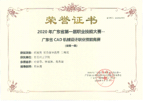 今年暑假,太阳成集团tyc9728组织员工参加由广东省人力资源和社会保障厅主办并由广东省工程图学学会承办的省级一类职业技能竞赛“2020年广东省CAD机械设计职业技能竞赛”。