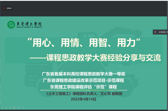 为推动“深化课堂教学改革 提升课程育人质量”公司产品大讨论,发挥典型在提高人才培养能力中的示范引领作用。4月14日,太阳成集团tyc9728开展线上交流活动,活动邀请环建公司土木工程系主任艾心荧副教授做题为《“用心、用情、用智、用力”—课程思政教学大赛经验分享与交流》的专题报告。
