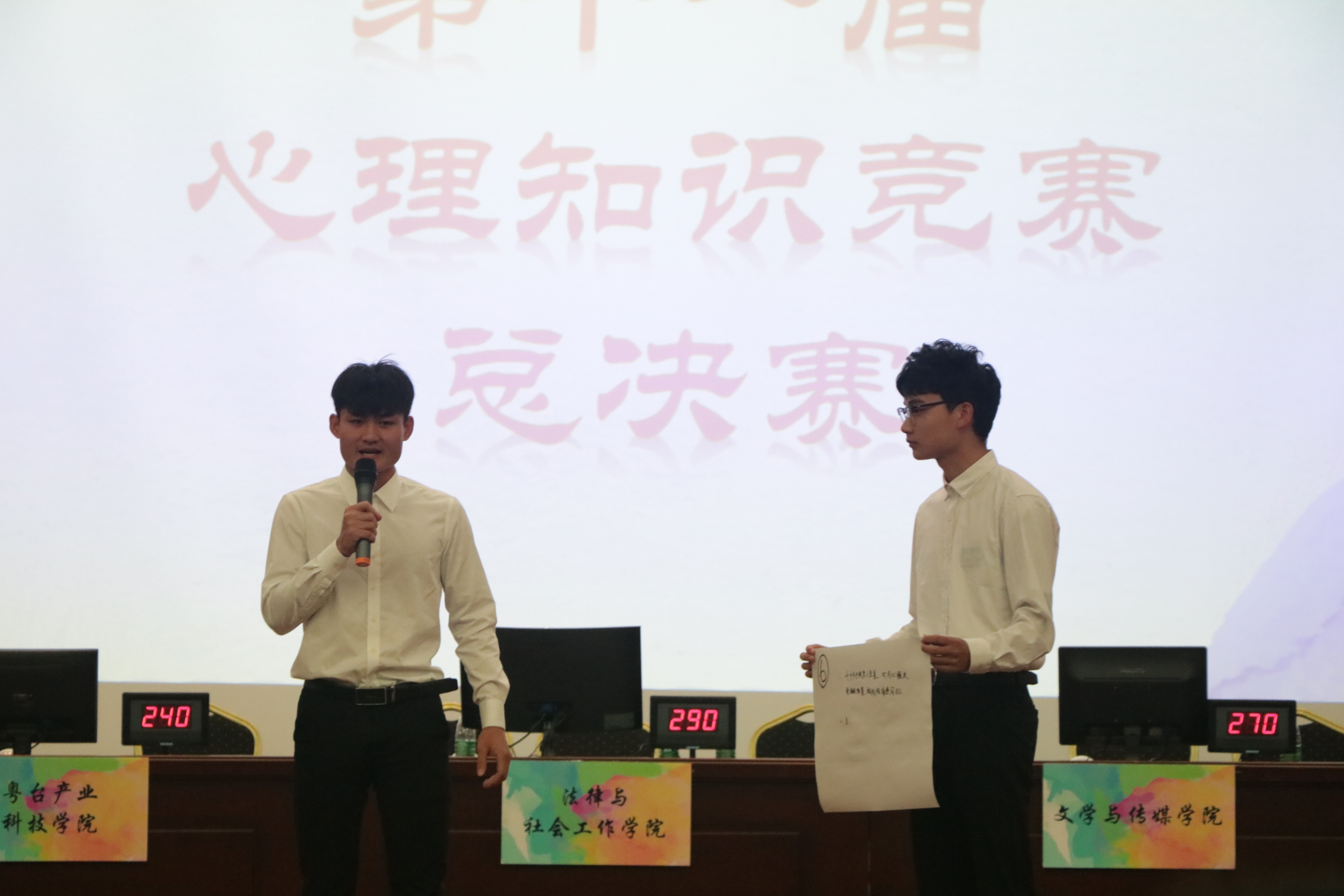 2018年12月16日,由太阳成集团tyc9728心理协调中心主办、各公司协办的“爱在心理,拥抱阳光”——第十一届心理知识竞赛总决赛在松山湖校区学术会议中心举行。出席本次活动的嘉宾有员工工作部部长黄金和、员工处副处长卫红权、知行公司副经理苏亚玲,涂叶满、涂月、黄丽萍、范兆兰、王文娜、刘腾飞老师以及各二级公司辅导员。