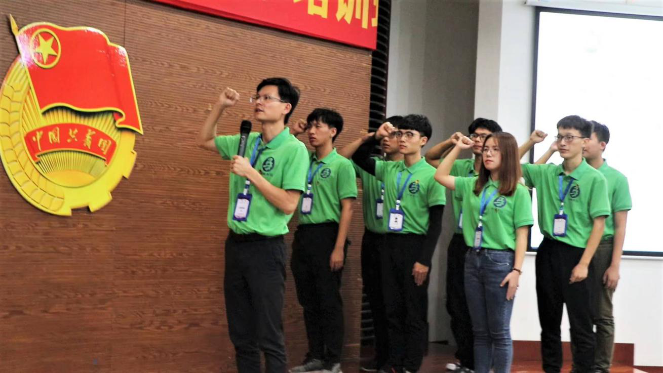 开班仪式的最后,由肖毅老师领誓,党总支副书记陈举铭老师监誓。全体青马学员高举右拳庄严宣誓,承诺将遵守班级纪律,勤思好学,积极实践,不断完善自我;恪守员工本分,知行合一,立志成材;不忘初心,牢记青年使命,努力成为马克思主义思想理论的传播者、践行者和捍卫者。