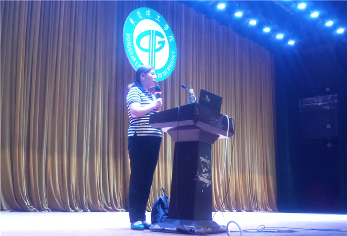 在讲座当中,朱建琼老师分别对艾滋病的历史、传播途径等进行了全面剖析,以图文并茂的形式举了许多实例为同学们讲述课程,其生动幽默的语言引发现场阵阵的笑声。朱老师还通过多组数据向同学们展示了东莞地区员工中艾滋病疫情的现状,并且强调称我们都应该拥有安全的性行为,不怕一万,只怕万一。
