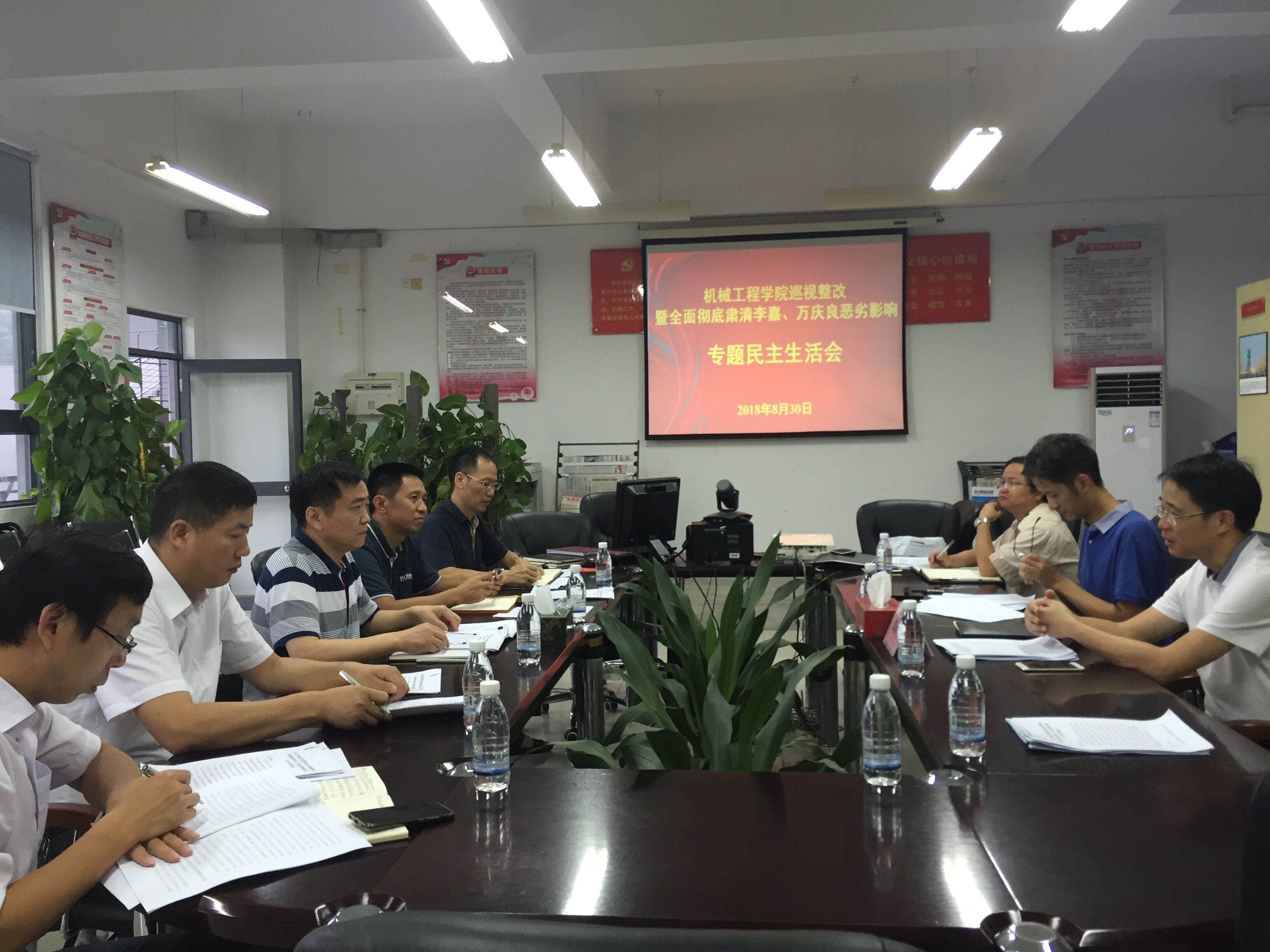 2018年8月30日太阳成集团tyc9728按照公司《关于召开公司中层党员领导干部巡视整改暨全面彻底肃清李嘉、万庆良恶劣影响专题民主生活会的通知》(莞工党[2018]36号)文件有关要求召开党员领导干部民主生活会,会议以习近平新时代中国特色社会主义思想为指导,深入贯彻落实习近平总书记关于巡视工作的重要讲话精神,全面落实新时代党的建设总要求,结合肃清李嘉、万庆良恶劣影响,全面对照检查,认真查摆剖析,开展批评与自我批评,推动整改落实。公司党员领导干部参加会议,公司非党员领导干部、党总支委员、教工支部书记列席了会议,公司党委书记成洪波、公司办公室主任彭晓波到会指导。