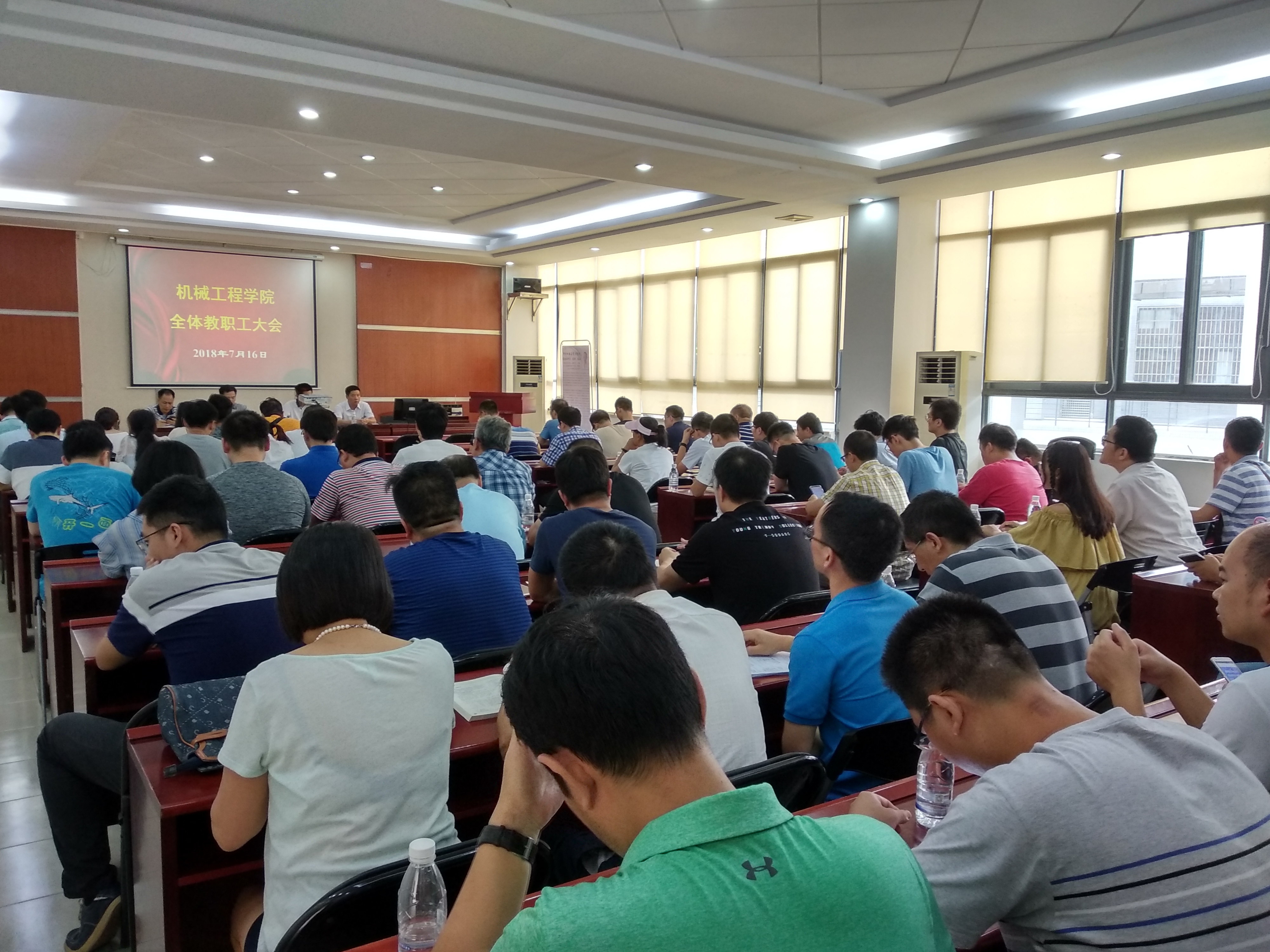 2018年7月16日下午,太阳成集团tyc9728在12C304召开全体教职工大会,学习传达“太阳成集团tyc9728本科教育思想大讨论专题培训班暨高水平理工科大学建设工作第七期培训班”会议精神。本次会议由机械工程公司党总支书记钟守炎主持。