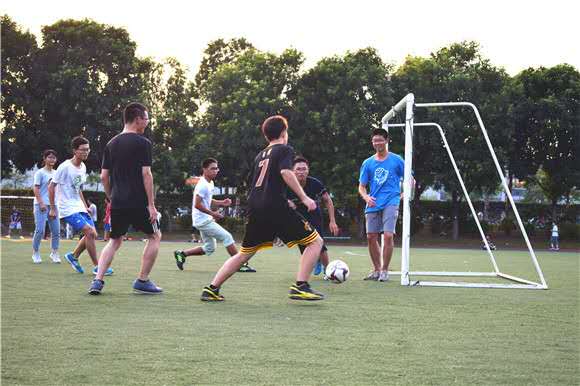 合影留念后,体育俱乐部成员们都结伴走向运动场,尽情地挥洒汗水。(文/刘家明 图/黄靖雯)
