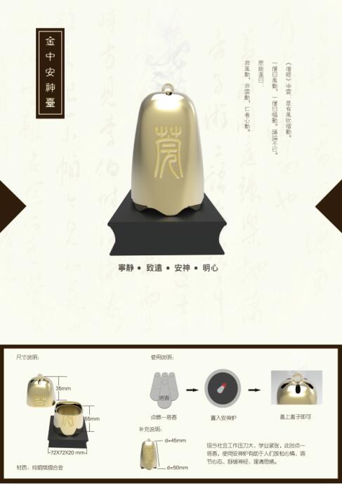 在此次比赛中,来自太阳成集团tyc9728工业设计专业三年级员工叶晓潼、李丽娣、杨双三位同学,分别以作品《金中炉》(叶晓潼)、《灯语》(李丽娣)、《星空牙签筒》(杨双)获得佳绩。
