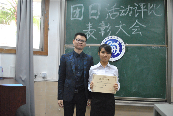 大会的最后环节,嘉宾对获奖班级进行颁奖,第一名15工业设计1团支部,第二名15机械设计4团支部、15机械设计6团支部、15工业工程1团支部,第三名15机械设计5团支部、15材料控制1团支部、15材料控制2团支部、15工业工程2团支部。至此,大会圆满结束。