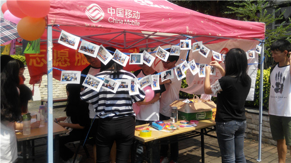 上午10点左右,两名志愿者预先赶到招新地点,熟练地撑开了帐篷,张贴宣传照片,紧锣密鼓的装饰帐篷。不久之后,上一届七彩课堂的队长恒举师兄赶到招新地点参与招新准备工作。到了中午,剩余的几位志愿者风风火火的赶到了招新现场,迅速的投入到了预先安排好的任务之中。中午,一直是举行各种活动的黄金时段。路边来来往往的行人,不断有同学被志愿者精心打扮的宣传摊位吸引过去,不一会,摊位前就挤满了前来咨询的同学,报名人数不断增加。截止到下午4点,报名人数已经远远超过预计。临近傍晚,志愿者们又拿出了许多宣传单,分别到各个路口分发传单,充分利用晚餐时间这最后的人流高峰期,再次拉来了数十名报名者。在这最后的高潮之后,此次招新活动终于告一段落,迎接这些报名者的,将会是严格的面试筛选。