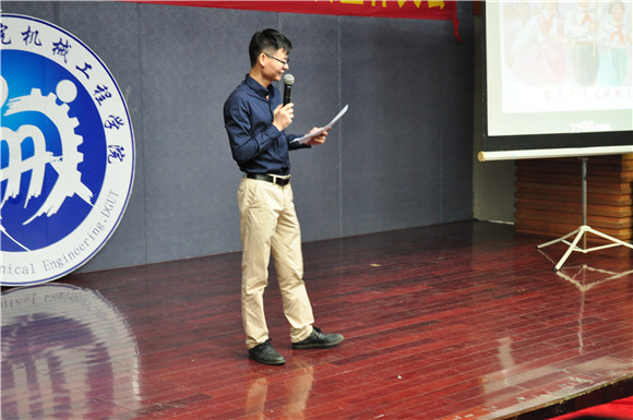 随后,团总支副书记、员工会主席辛钦泰上台为大家做工作展望,辛主席充分肯定了团学在过去一年取得的骄傲硕果,同时寄望在新的一年里团学能够以“一个中心,两个结合,三项服务”为核心,在学习、生活等方面更好地服务机械的每一位学子。而后,前任主席韩旭就“感受,感情,感恩”三个关键词分享了自己在团学三年的感触,希望每一位干事能够用心感受在员工工作中的苦与乐,珍惜与每一位同伴相处的的感情,用心去感悟,同时更要学会感恩,感恩每一个人每一件事。最后,肖毅老师从员工会的起源引出作为团学一员应本着一颗奉献的心为人民服务,为本公司的每一位员工服务,并且要求每一位干部和干事做到行动跟心走,拓宽思路,积极创新,在团学这个大家庭中用心去发现适合自己的工作并能学有所成。