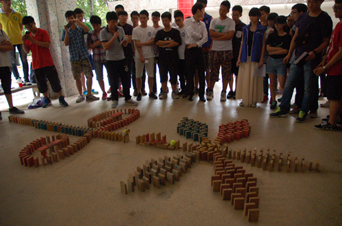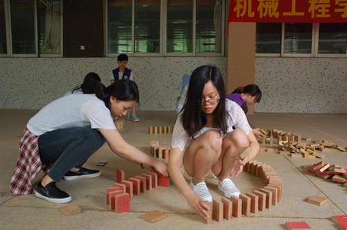 这次的比赛分为两个回合,第一回合是速度赛,每组参赛选手需以最快速度摆好给定的图形,评委们就摆出的图形与给定图形的相似度并结合选手们完成图形的速度以及推倒骨诺牌的连贯性打分。第二回合则是精彩的图形创作赛,参赛小组需就“莞工的美和足迹,我们的爱和创意”这个主题进行创作并在23分钟内,使用骨诺牌及相关道具摆出自己设计的作品,在评比环节进行充分的解说顺利并将其推倒。比赛现场,参赛选手充分发挥他们的想象力与创造力,摆出各种创意图案。即使偶尔有队员不小心把骨诺牌弄倒了,他们也毫不气馁地继续。在评比环节,随着一幅幅惟妙惟肖的骨诺牌图案呈现在大家面前,观众们不断传来热烈的掌声。