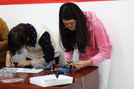 本次竞赛分别在松山湖和莞城两个校区进行,于4月9日和11日完成。本轮比赛是拼装赛,分为三个环节:第一是拆分和检查零件环节;第二为组装环节;第三是组装完的小车走直线环节。在比赛中,每个队伍都使出浑身解数,积极努力地互相配合队友。