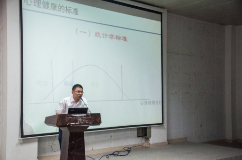 培训伊始,刘勉老师向同学们进行了简短的自我介绍并且邀请部分同学回答问题,通过互动,台上台下融为一体,同学们认真的听讲,还兴致勃勃的拿起手上的笔记本记录下老师说的点点滴滴。刘勉老师结合亲自制作的PPT给同学们展开了一场别开生面的演讲,刘勉老师简而易懂的培训方式让同学们迅速融入其中。在培训中,刘勉老师列举了一些现实案例和展示了心理漫画,同学们纷纷感到不可思议,本来觉得对于自己来说遥不可及的心理问题竟然可以如此贴近生活。在培训过程中,不少同学举手发问询问刘勉老师一些日常的忧虑的问题,刘勉老师热心的为每一位提出疑问的同学解除其心结。