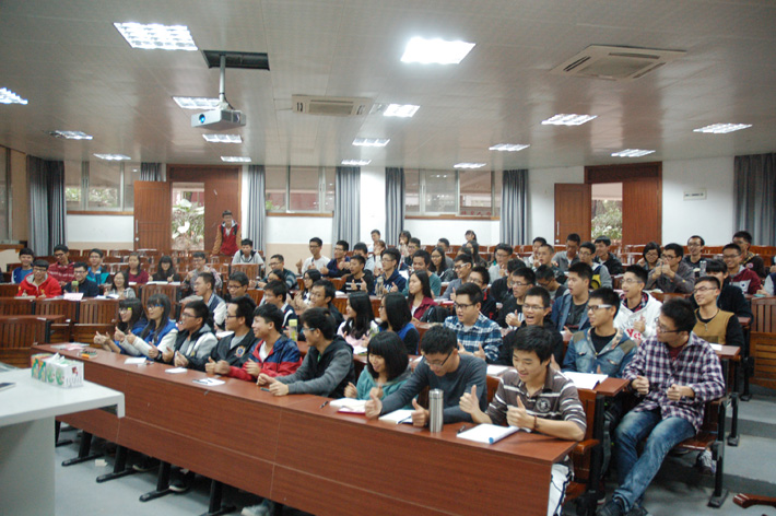 培训伊始,全体干事为职业规划讲师团培训师曾苑美做“爱的鼓励”,整齐有节奏的掌声活跃了会场气氛,充分调动了干事们的热情。曾苑美针对公文培训展开了一场轻松愉悦的培训演讲,演讲分为四个内容,分别是“烦人”的飞信、会议工作、活动策划、场地申请。演讲中,曾苑美就这四个内容详细地向干事们讲述了其中的工作流程以及一些重要的注意事项。演讲最后,她给予干事们一句赠言——越努力,越幸运。