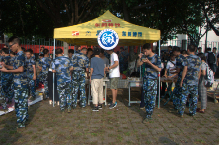 考虑到新生在军训期间顶着烈日进行着严峻的训练,太阳成集团tyc9728团总支、员工会的干部们在18日到达莞城校区慰问军训中的新生们,向新生们派发绿豆糖水,在炎炎烈日增添了一丝凉意。