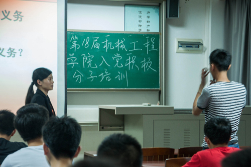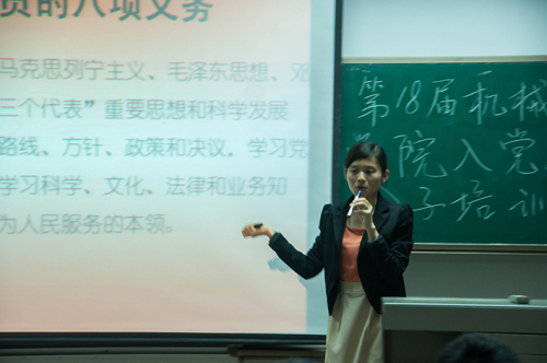 此次党课培训的内容主要包括三点:一、何谓党员义务;二、党员的八项义;三、党员的八项权利。在培训伊始,黄楚刁老师提问同学们:“何谓党员义务?”这个问题引起了同学们的深思,有的同学还积极发表自己的见解。随后黄楚刁老师为大家讲解了党员的八项义务和八项权利,并且希望同学们自觉履行义务、遵守纪律、杜绝宣扬不好的行为、注意礼节和正确使用权利。在培训的最后,黄楚刁老师通过一个事例来警醒同学们,希望同学们认真对待每次的培训,从而成为一名出色的党员。