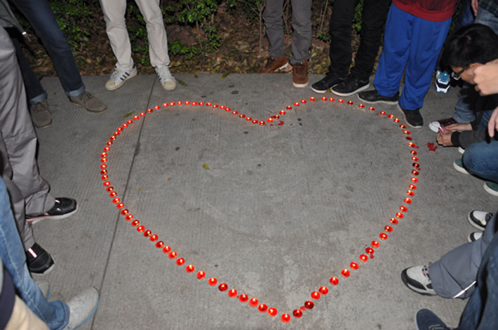 莞城校区也为女生们准备了丰富多彩的庆祝活动:3月6日晚修后,男生们在女生宿舍楼下用蜡烛摆出心形形状,并由工业设计的赵达鹏同学代表男生们为女生们进行吉他弹唱,现场喝彩不断。女生们也是为如此浪漫的场面感动不已。除此之外,男生们还通过为女生们实现小心愿和送糖水的方式送祝福。