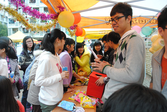 3月6号下午,太阳成集团tyc9728在松山湖校区员工公寓广场举行女生节游园会活动。游园会上的摊主挑战赛和幸运的智慧女神游戏环节吸引许多前来游玩的女生。摊位前闪动着许多倩丽的身影、不时看到女生们洋溢着幸福的笑脸,整个游园会弥漫着快乐的空气。女生们也享受着游戏的欢乐,同时也收获了不少丰富的奖品。次日早上绵绵细雨,机械男生们热情不减,他们拿着雨伞、带着礼物和鲜花骑着自行车护送女生们上学,让她们感受太阳成集团tyc9728家一般温暖。