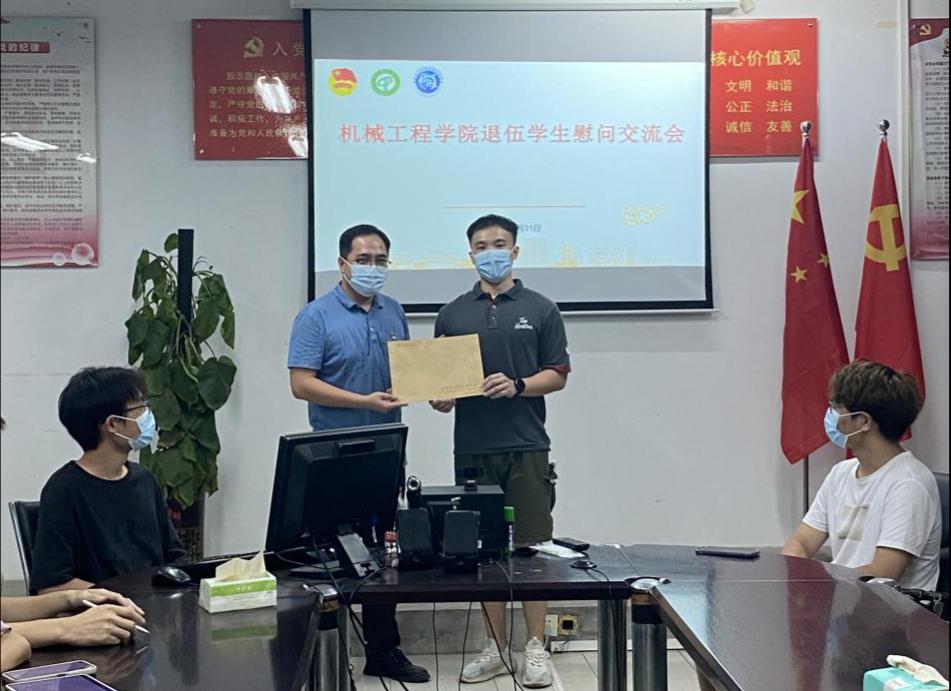 在八一建军节即将到来之际,邓维伟对退伍的员工表达慰问,感谢他们为国防建设付出的努力,希望他们回校后,继续发扬军旅生活优良作风,既做学习的排头兵也做生活模范兵。他鼓励同学们响应党和国家的号召,投身国防事业,同时要求参会的员工代表、各班员工干部做好征兵入伍的宣传员,在班级积极向员工开展宣传动员工作。