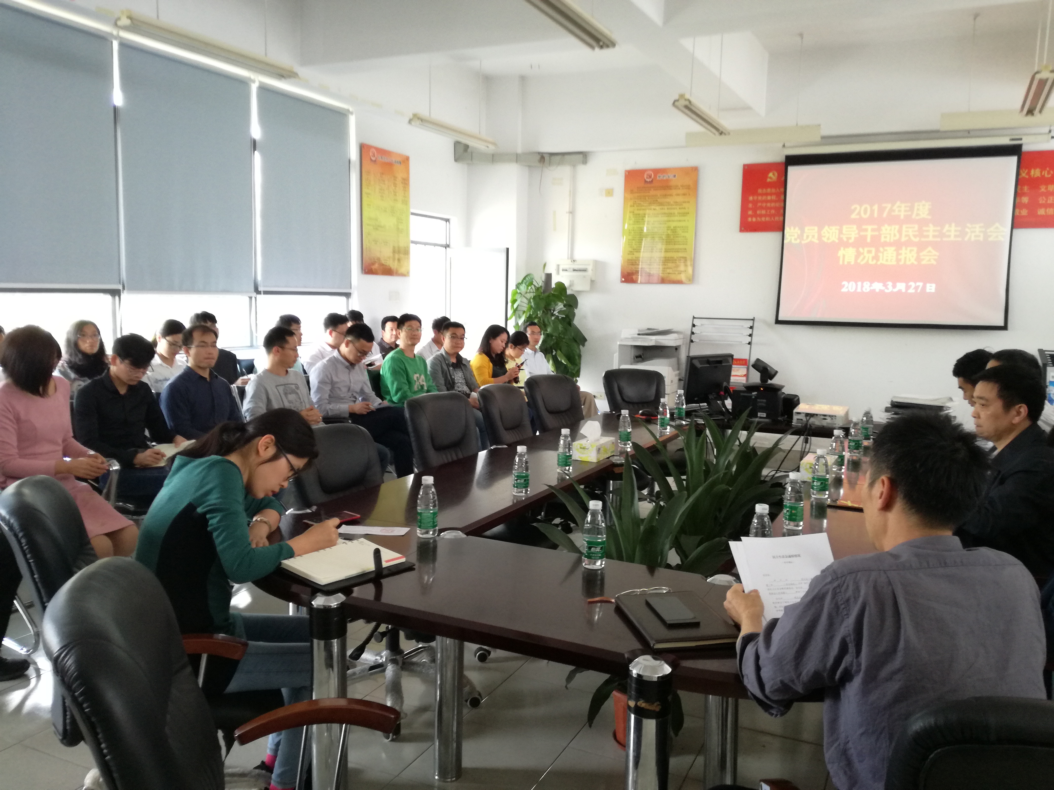 根据《关于认真开好2017年度公司中层党员领导干部民主生活会的通知》(莞工组〔2017〕56号)文件精神和公司党委统一部署安排,2018年3月27日,机械工程公司党总支召开2017年度党员领导干部民主生活会情况通报会,教工党支部全体党员、院教工代表出席本次会议。会议由党总支副书记陈举铭主持。