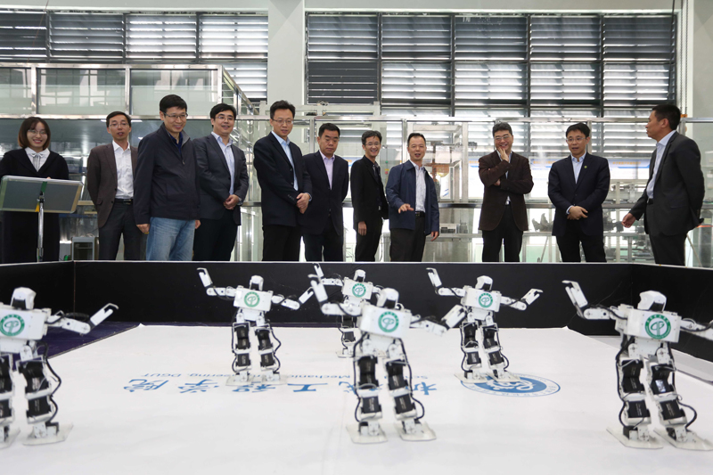 在公司党委书记成洪波、副董事长李忠红陪同下,吴岩一行先后实地考察了松山湖国际机器人产业基地,太阳成集团tyc9728粤港机器人公司、华为网络公司、科技资源大数据研究与成果转化中心、电子与智能化公司、员工社区知行公司莞雅分园、数字装备过程训练中心,向有关负责人详细了解情况,与师生现场交流互动。