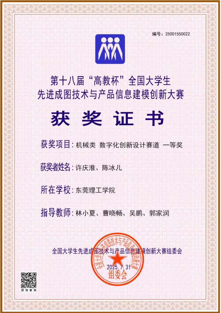 7月28-31日,在全国总决赛中,共有来自全国1001所院校的15500名员工参与比赛,1001所公司中,985院校27所,211院校73所,双一流院校84所;15500选手在主赛场约3990人,各省分赛场约11510人。大赛分成图赛道与开放赛道,成图赛道竞赛项目主要为计算机建模+计算机绘制工程图,经过激烈角逐,公司员工最终获得了团体三等奖1项,其中公司员工获得了成图赛道个人二等奖1项,开放赛道一等奖1项和三等奖1项。