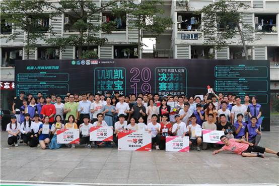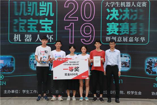 比赛结束后,以每一轮比赛成绩加上网上投票成绩进行计算,得出本次决赛的排名。最后,肖毅老师、黄楚刁老师、陈凤宜老师、罗嘉楠老师、凯宝机器人科技有限公司代表为获奖队伍颁奖,并合影留念。
