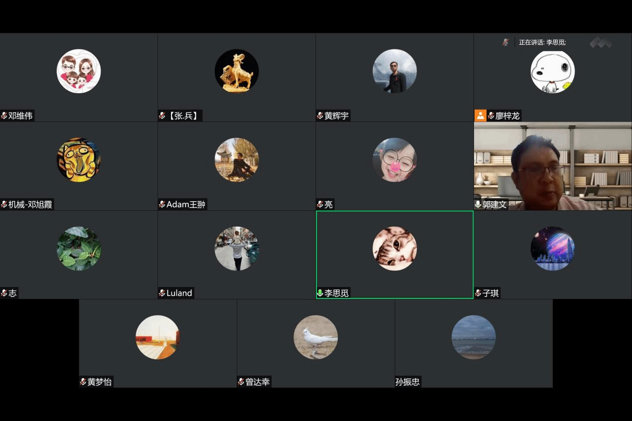 五位教师介绍了自己目前的生活、教学情况,老师们在居家办公期间,克服各种困难,仍然坚守岗位,积极认真开展线上线下教学和日常办公,他们用实际行动,展现了公司教师的高度责任感和事业心。郭建文对老师们的高度配合表示肯定,同时向各位老师介绍了公司目前的疫情防控政策,关切地询问大家的身体情况、教学进度及教学工作安排等。黄辉宇介绍了公司当前的教学工作政策,叮嘱老师们做好工作预案,务必保证教学中心工作有序开展。