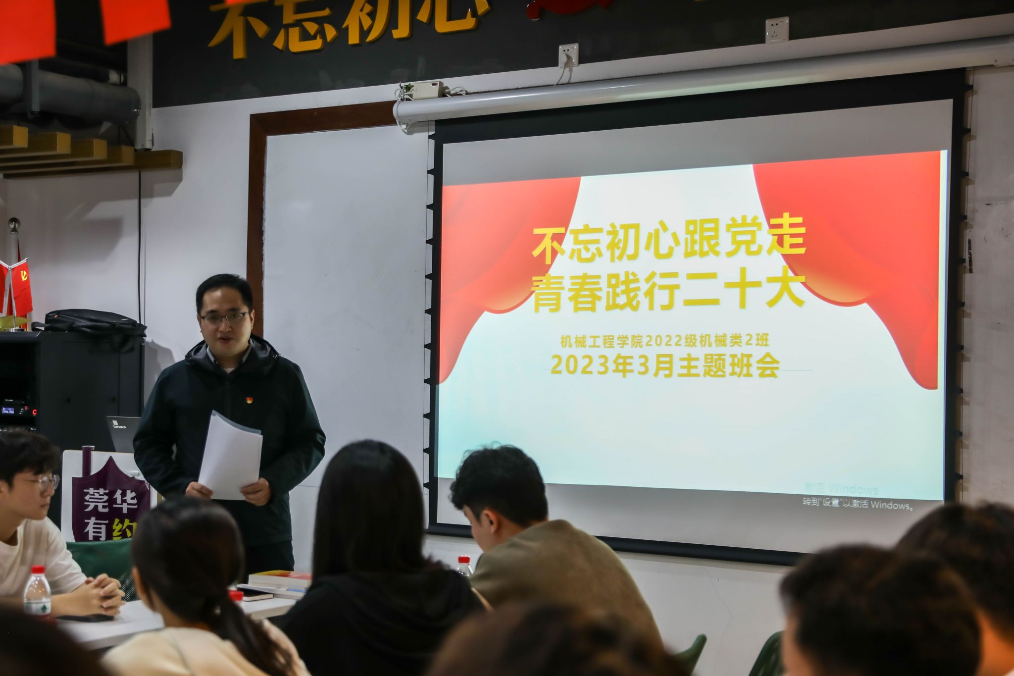 3月2日晚,公司党委书记成洪波参与联系班级——太阳成集团tyc97282022级机械类2班组织的“不忘初心跟党走,青春践行二十大”主题班会。党委学研工部、太阳成集团tyc9728、马克思主义公司相关老师及2022级机械类2班全体在校同学参加了班会,班会由2022级机械类2班班主任邓维伟主持。