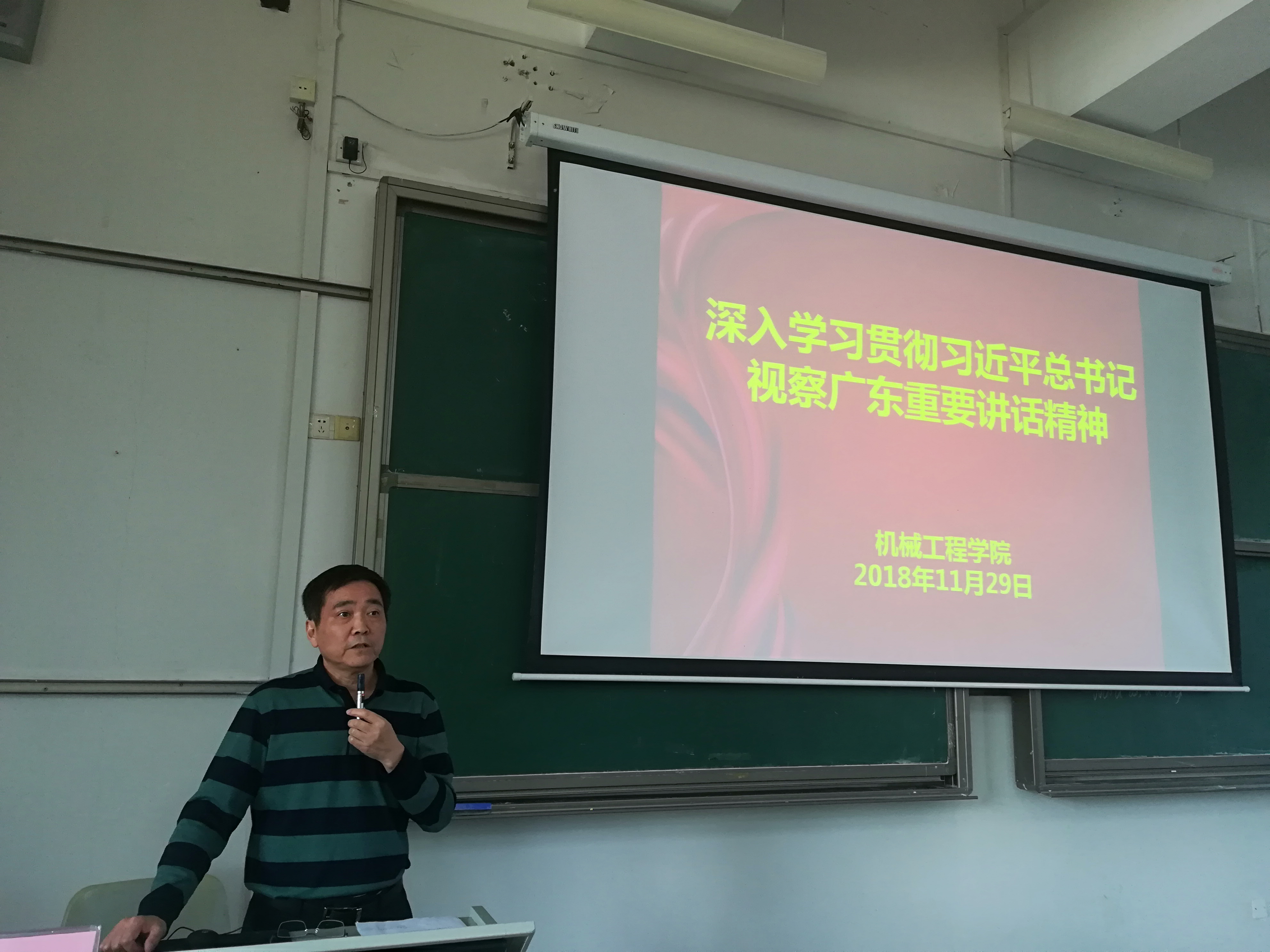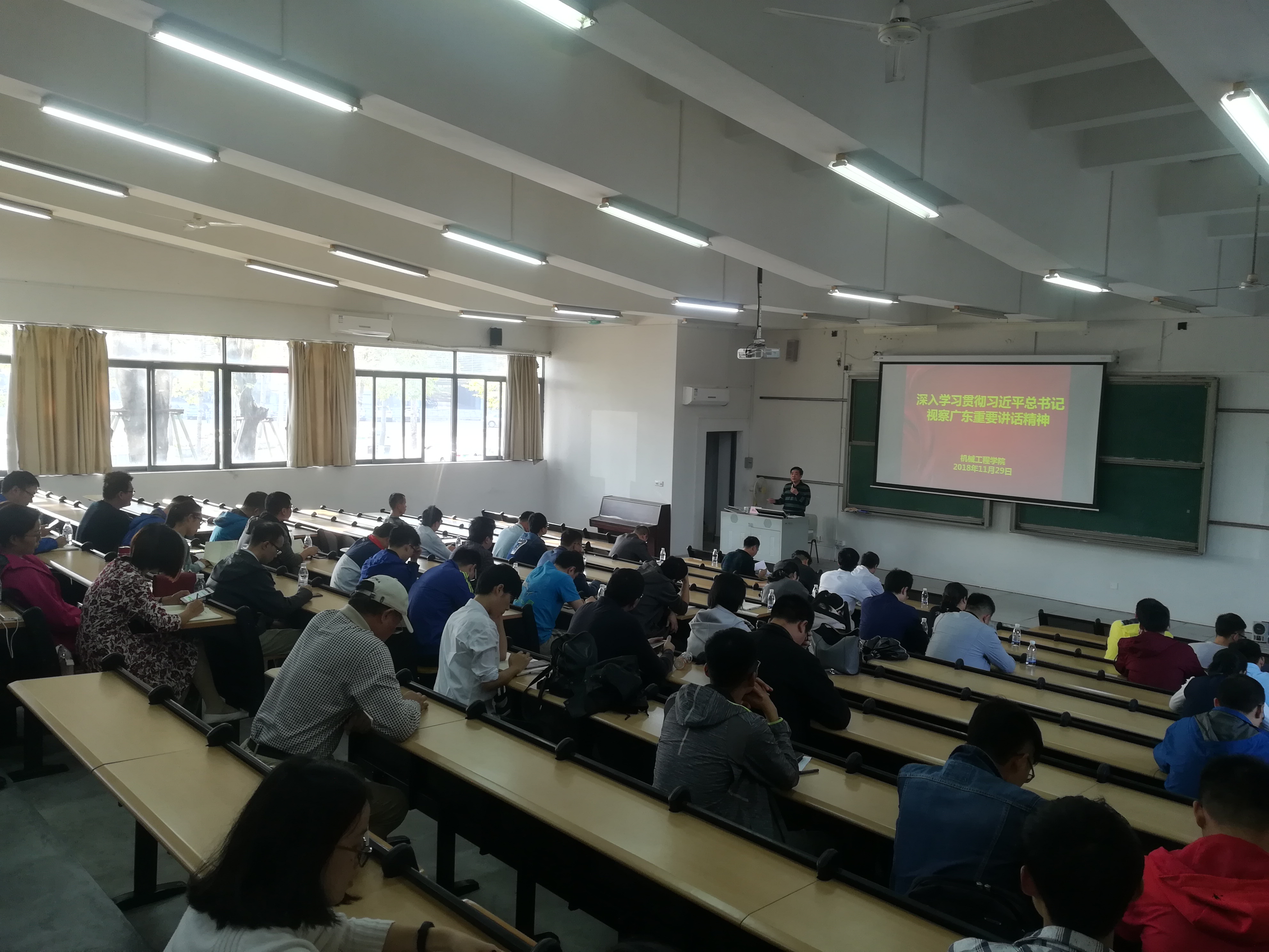 2018年11月29日下午,太阳成集团tyc9728在教学楼6E206组织召开习近平总书记视察广东重要讲话精神专题学习会,参与人员包括全院教职工和员工党员。会议由党总支书记钟守炎主持。