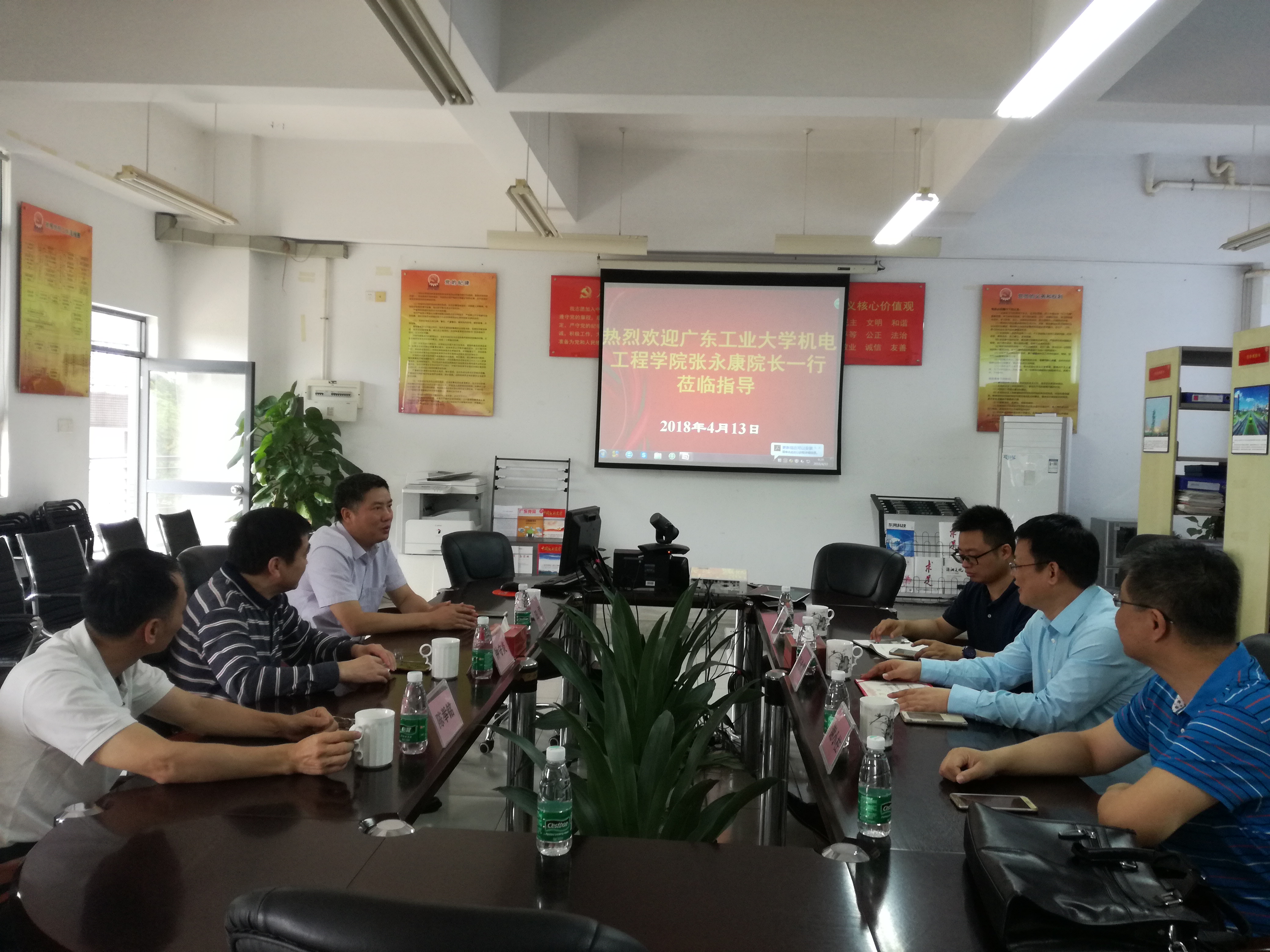 2018年4月13号上午,广东工业大学机电工程公司经理张永康一行到访太阳成集团tyc9728学习交流,机械工程公司党总支书记钟守炎、副经理田君、副书记陈举铭出席此次接待活动。