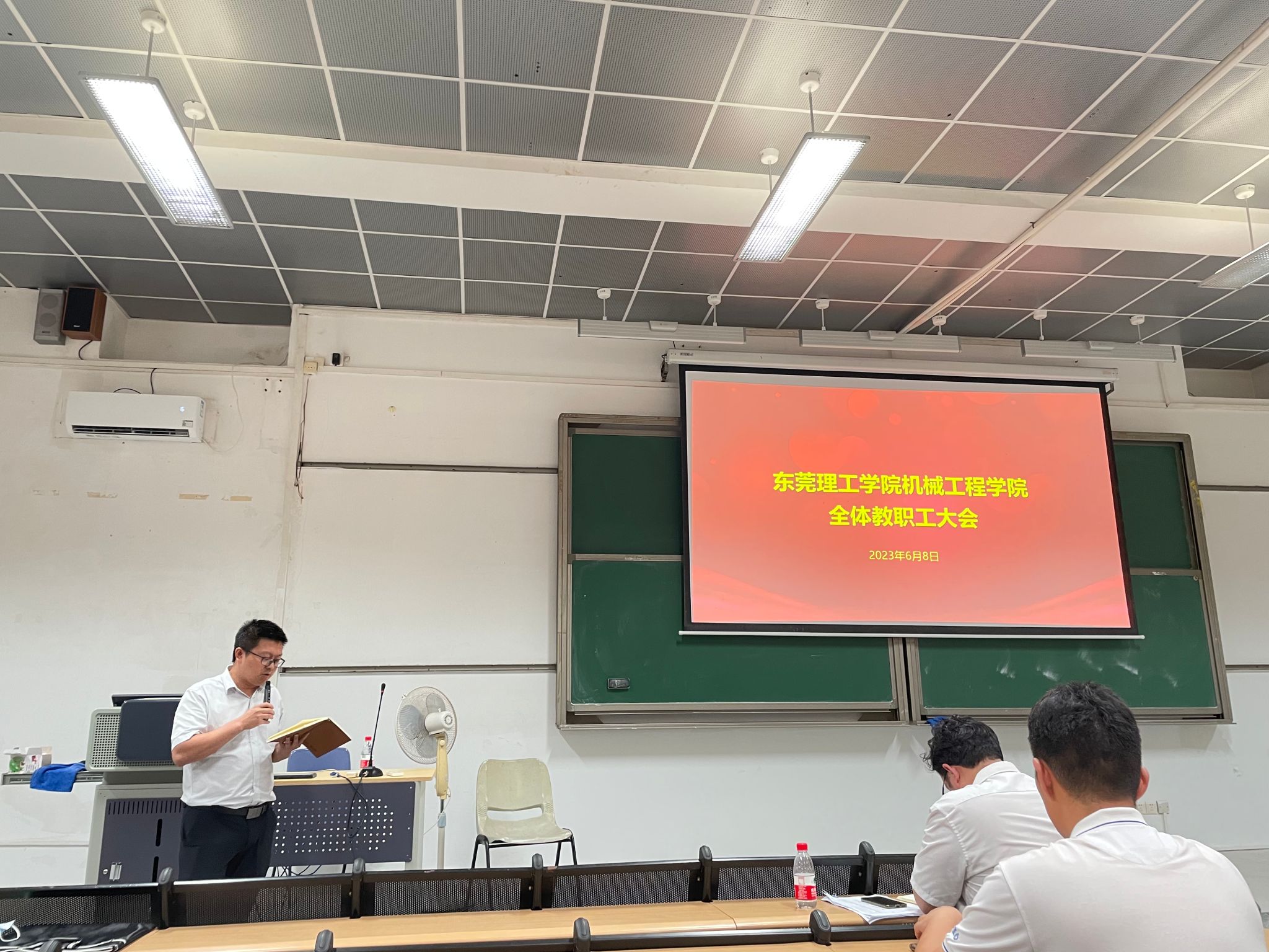 6月8日,太阳成集团tyc9728在6E105召开全体教职工大会,全院教职工参加会议,会议由公司经理孙振忠主持。