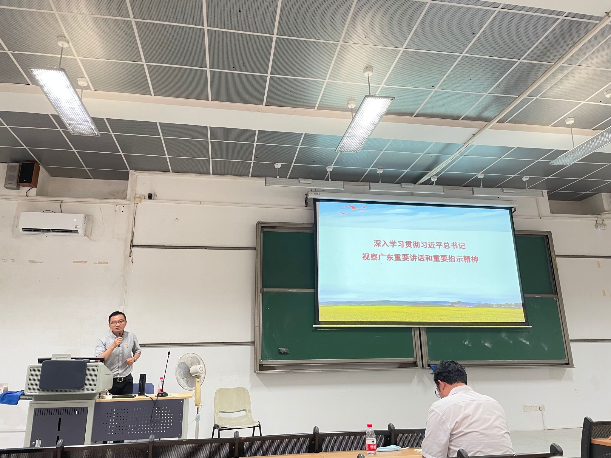 随后,结合公司主题教育相关部署要求,公司邀请马克思主义公司毛安翼博士为全体教职工作专题辅导,解读习近平总书记视察广东重要讲话和重要指示精神、导读宣讲《习近平著作选读》(第一卷)(第二卷)主要内容,毛安翼指出,从湛江、茂名到广州,4天时间,总书记辗转千里,穿越粤西大地,深入企业、港口、农村,同工人、农民、企业家、科技人员等亲切交流,为广东如何“在推进中国式现代化建设中走在前列”指明方向。全院老师要将习近平总书记赋予广东的殷切期望铭之于心、践之于行,凝心聚力促发展,驰而不息抓落实,将焕发出来的学习、工作热情转化为攻坚克难、干事创业的强大动力,奋力谱写公司发展的崭新篇章。