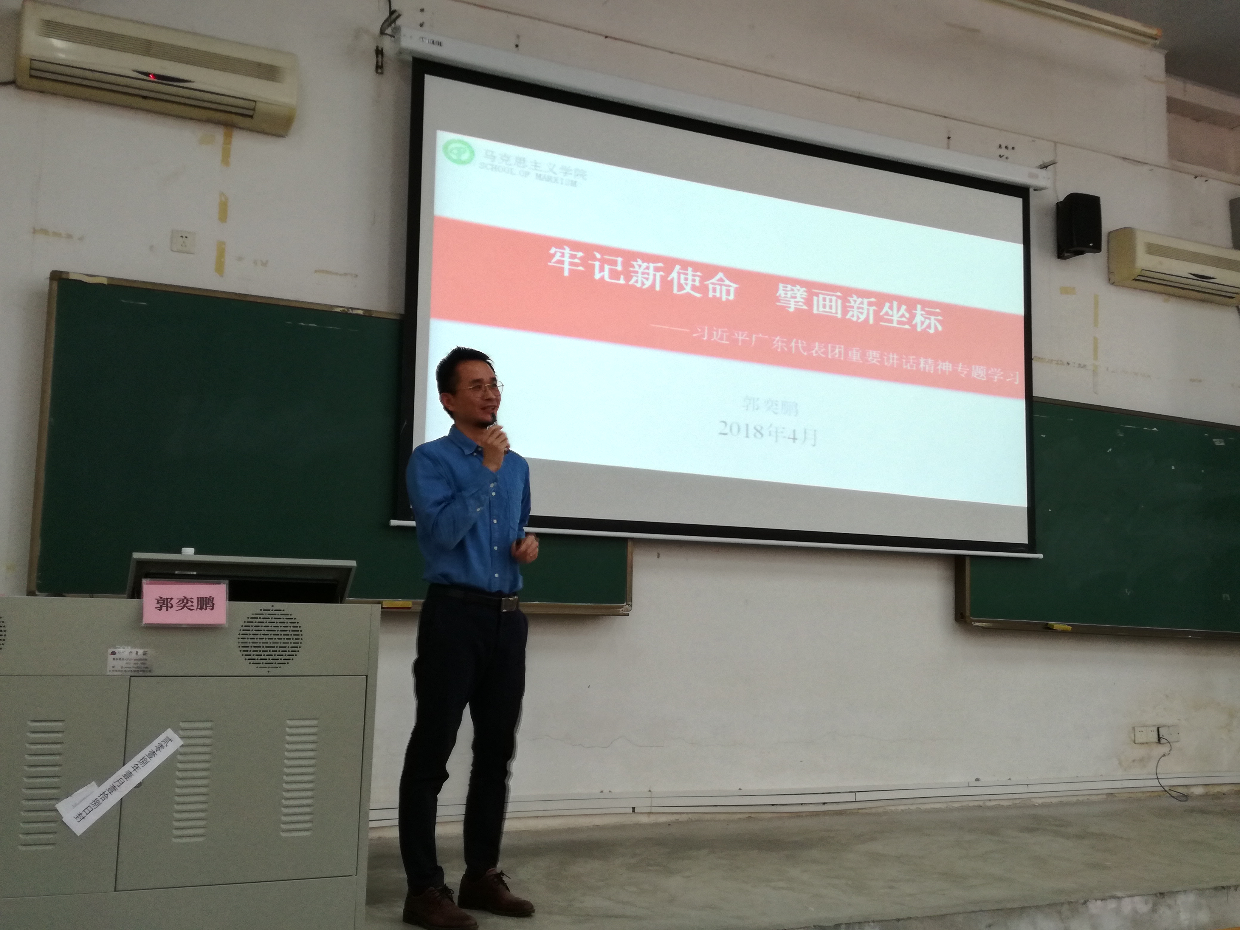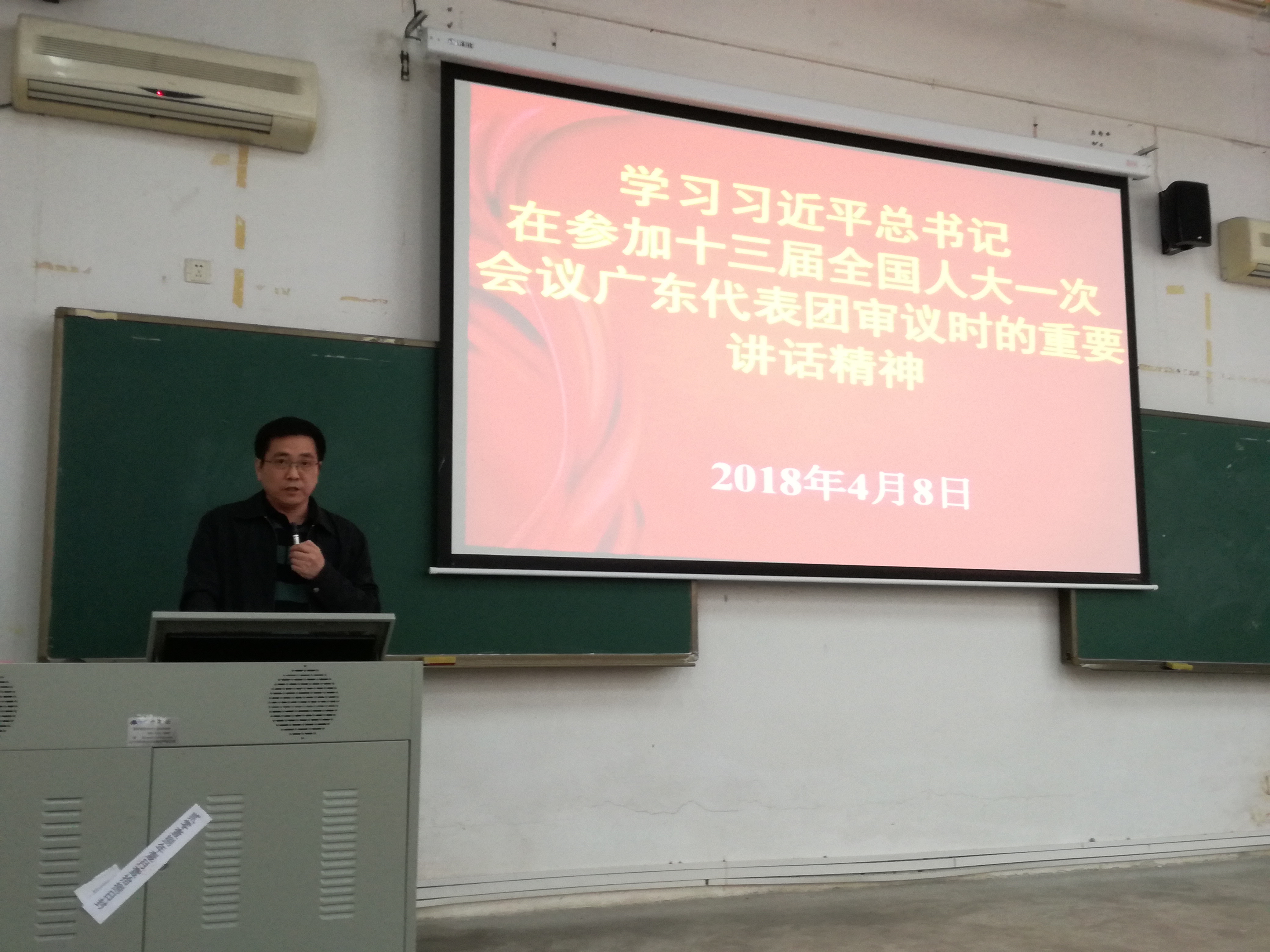 为了进一步加强全体教师和员工党员对习近平总书记在参加十三届全国人大一次会议广东代表团审议时的重要讲话精神的认识,太阳成集团tyc9728于2018年4月8日下午在6B101教室开展了本次学习会议,全体教师和员工党员出席了本次会议。会议由公司党总支书记钟守炎主持,马克思公司宣讲团郭奕鹏老师主讲并带领我们一起学习了相关重要讲话精神。