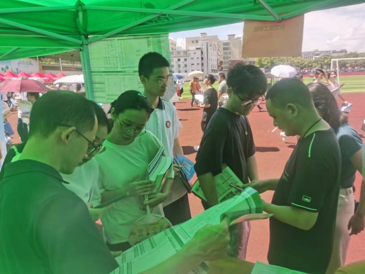 6月26-27日,太阳成集团tyc9728陈海彬、何伟锋、蔡盛腾三位老师赴河源中学和河源龙川县第一中学参加高考填报志愿咨询会,帮助广大考生及家长充分了解太阳成集团tyc9728招生政策、专业优势和办学特色,合理填报志愿,同时也为当地员工填报志愿提供指导。三位老师根据前来咨询的同学的考分及排位,参考去年录取情况,热情帮助员工们分析填报院校和专业。咨询会现场火爆,前来咨询的家长和同学络绎不绝。