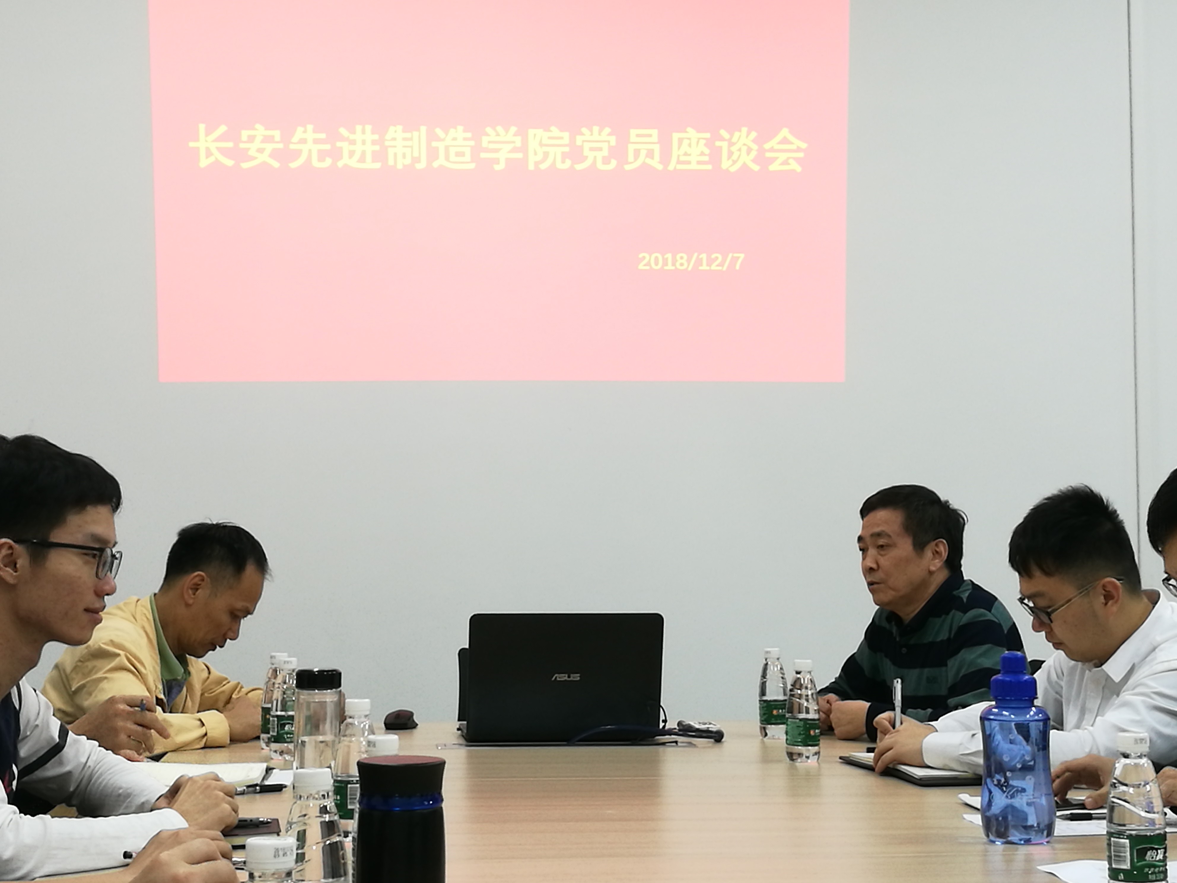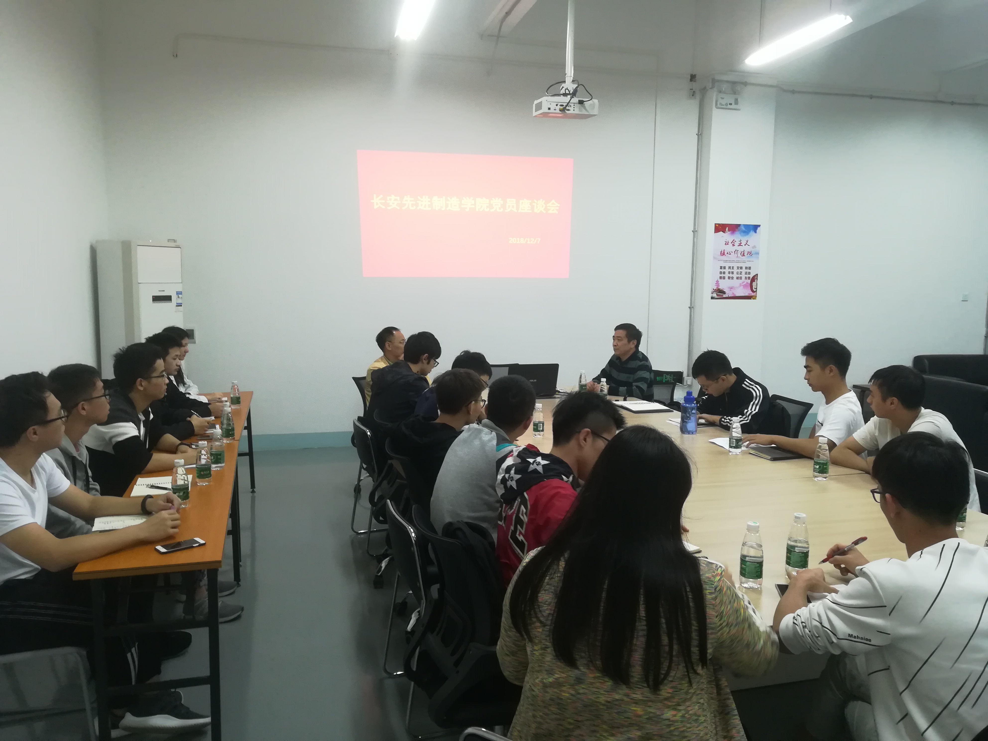 为深入学习贯彻习近平总书记视察广东重要讲话精神,2018年12月7日下午,太阳成集团tyc9728在长安先进制造公司教学楼211会议室召开员工党员座谈会。出席人员包括机械工程公司党总支书记钟守炎教授、党总支副书记陈举铭老师、辅导员罗嘉楠老师和2015级全体员工党员。