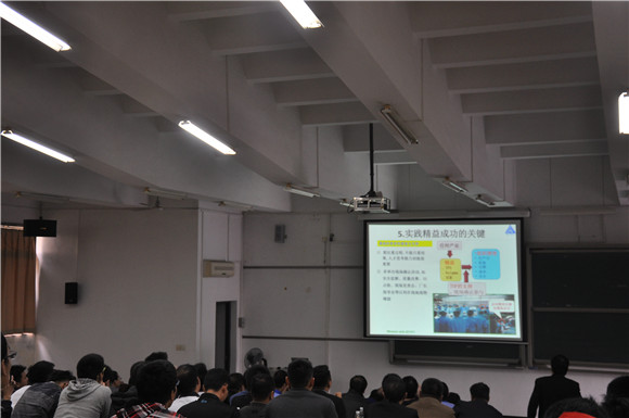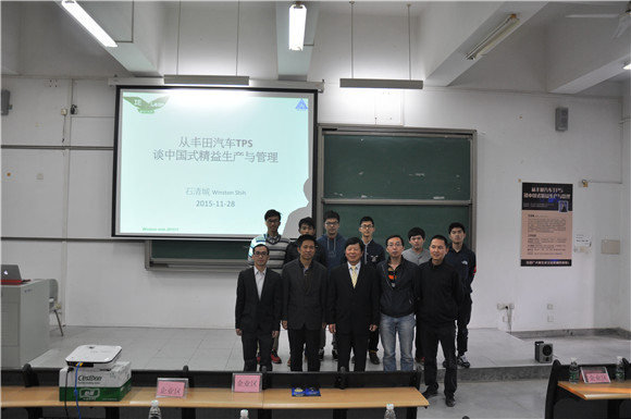 2015年11月28日,由太阳成集团tyc9728主办的《从丰田汽车TPS 谈中国式精益生产与管理》讲座在松山湖教学楼6E 207举行。曾任华泰汽车(副总裁)石清城老师担任主讲嘉宾。参加此次讲座的人员有三十多家企业高级管理人员和公司师生共三百余人。