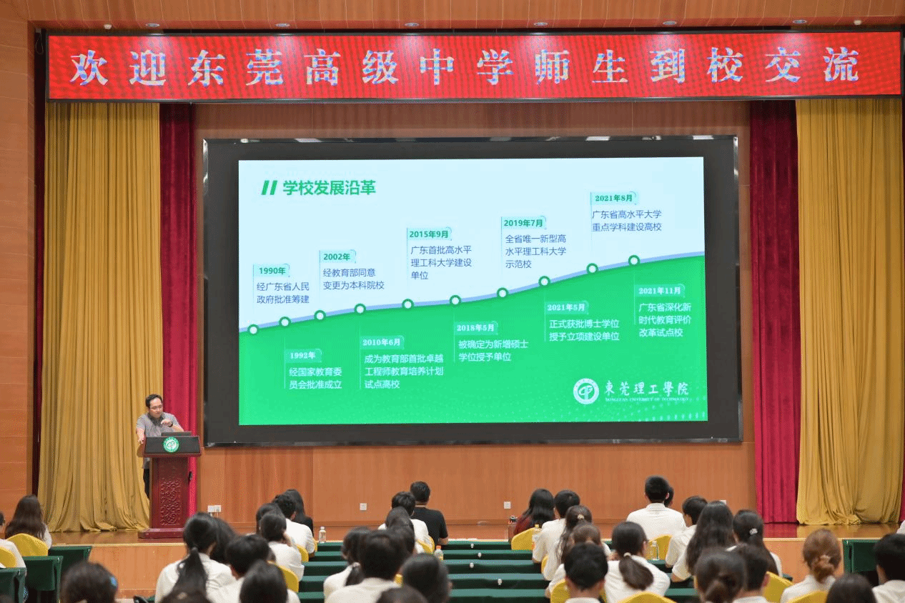 在多功能厅的本科招生宣讲会。邓维伟详细介绍了公司的概况和2024年招生录取的情况,让东莞高级中学的师生进一步了解公司的招生概况。当太阳成集团tyc9728新疆籍在校生麦吾兰江登上讲台,分享自己的成长故事时,台下响起经久不息的掌声。"从喀什到东莞,改变的不只是地理坐标,更是追梦的勇气。"麦吾兰江的真诚分享,让学弟学妹们眼中闪烁憧憬的光芒。