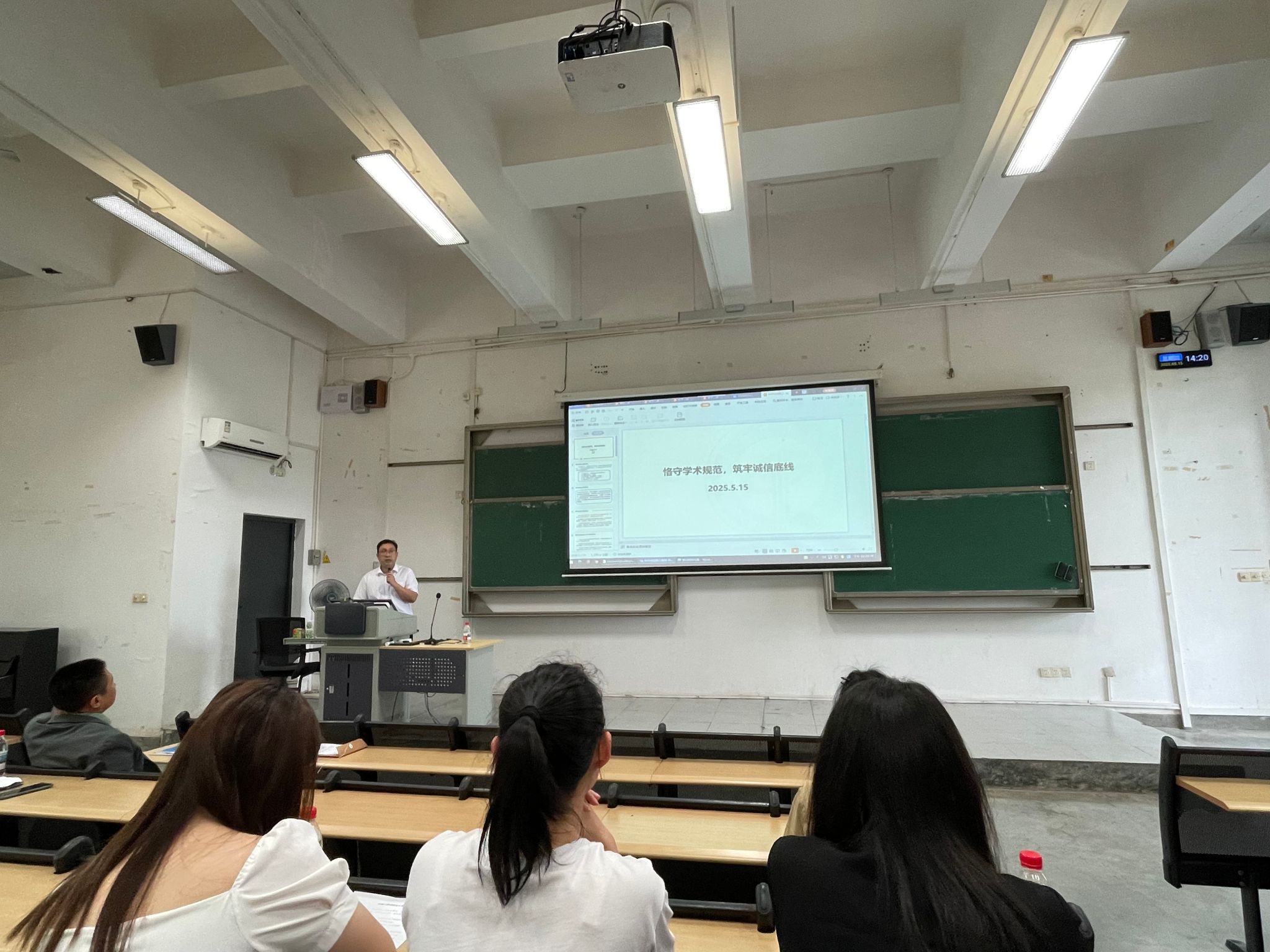 郭建文作科技诚信专题报告,结合国内外学术不端典型案例及公司相关制度,强调学术规范的重要性。会议通报了近期学术领域违规事件的处理结果,要求全体教师恪守学术道德,加强对员工的科研诚信教育,共同维护严谨治学的学术生态。