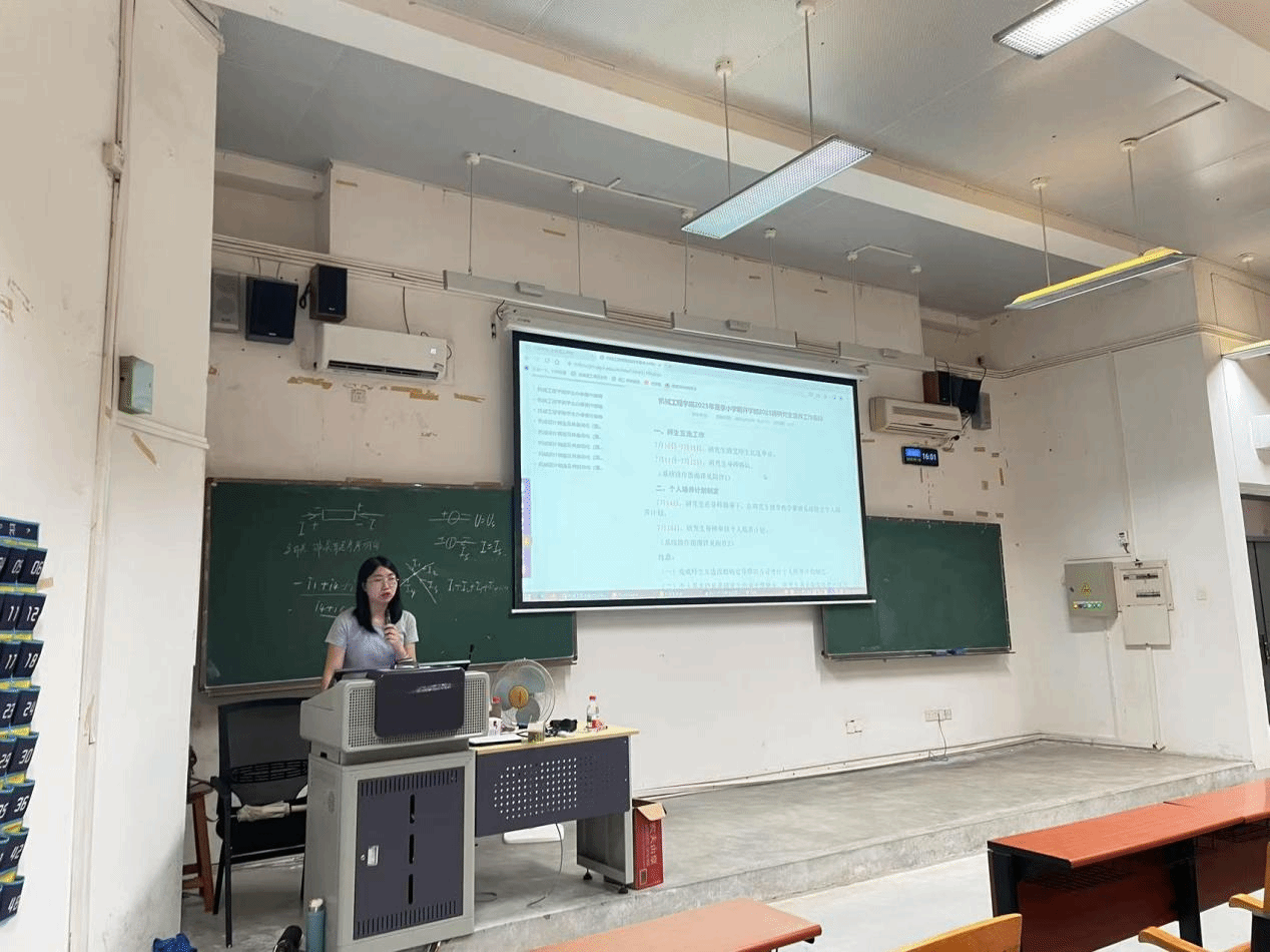 紧接着,研究生秘书鲍艳艳介绍了人才培养方案,详细解读了课程设置、学分要求、培养目标等内容,让同学们对未来的学习规划有了清晰的认识。同时,鲍艳艳还介绍了教务安排,包括选课流程、考试安排、学籍管理等方面的注意事项,指导同学们如何合理安排学业进度,顺利完成研究生阶段的学习任务。